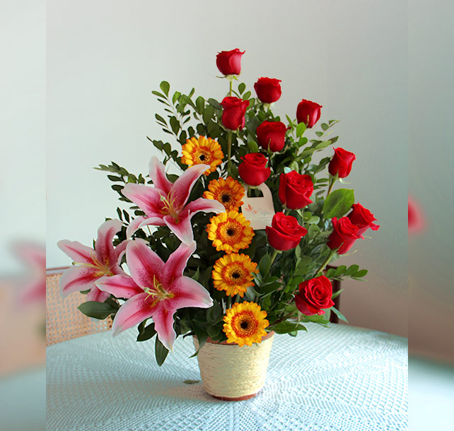 ARREGLO ROSAS, GERBERAS Y LILIUMS