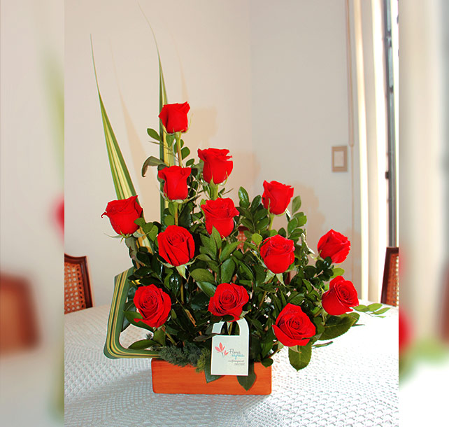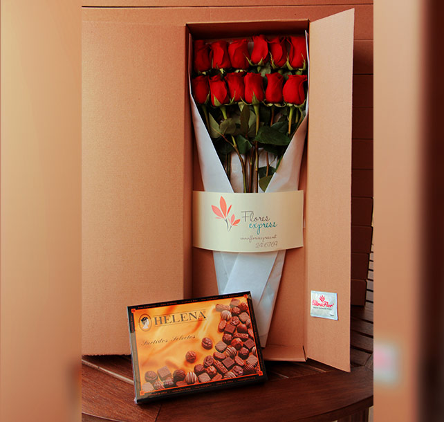 CAJA DE 12 ROSAS + BOMBONES HELENA