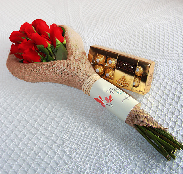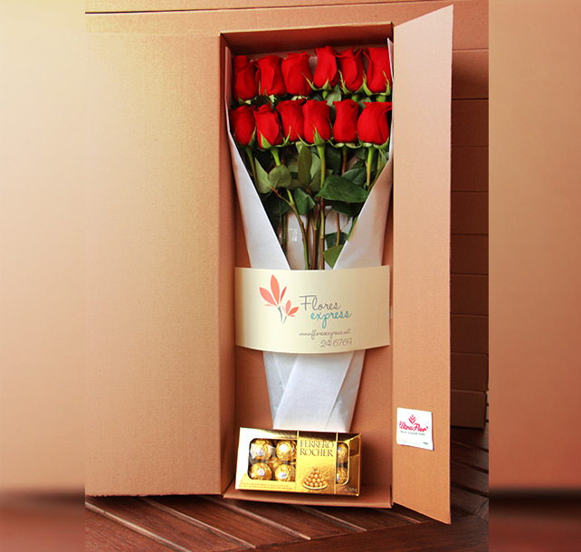 RAMO DE 12 ROSAS + CHOCOLATES FERRERO ROCHER